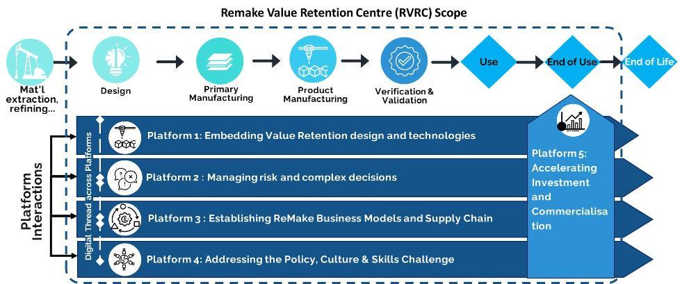 The RVRC programme brings together five platforms, each tackling a unique part of the ReMake value chain. By combining foundational and applied research, we’re advancing circular solutions that preserve value in both products and materials supported by a strong focus on the digital lifecycle.